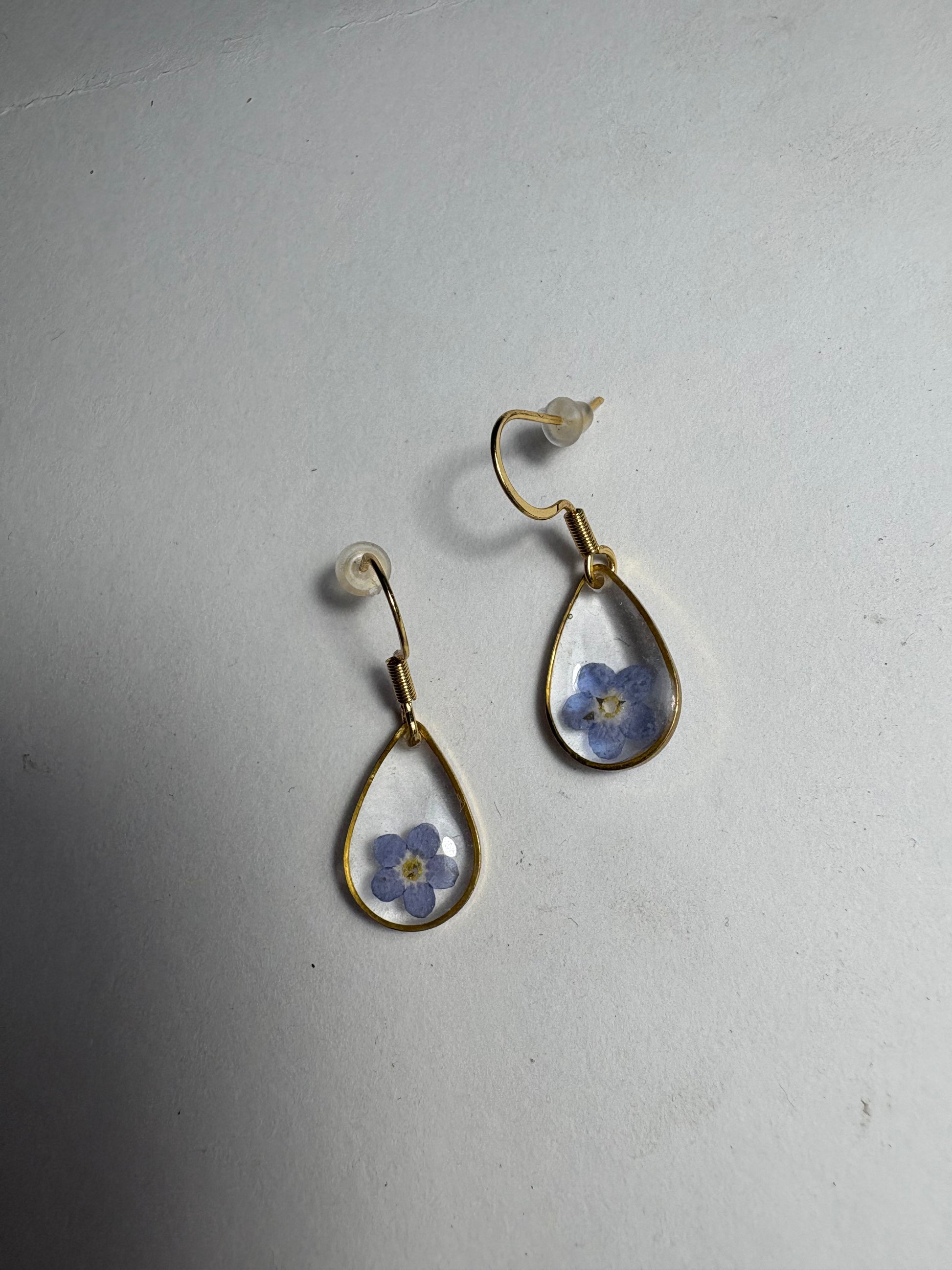 Orecchini in acciaio inossidabile con fiore, non ti scordar di me, vero essiccato e catalizzato in resina