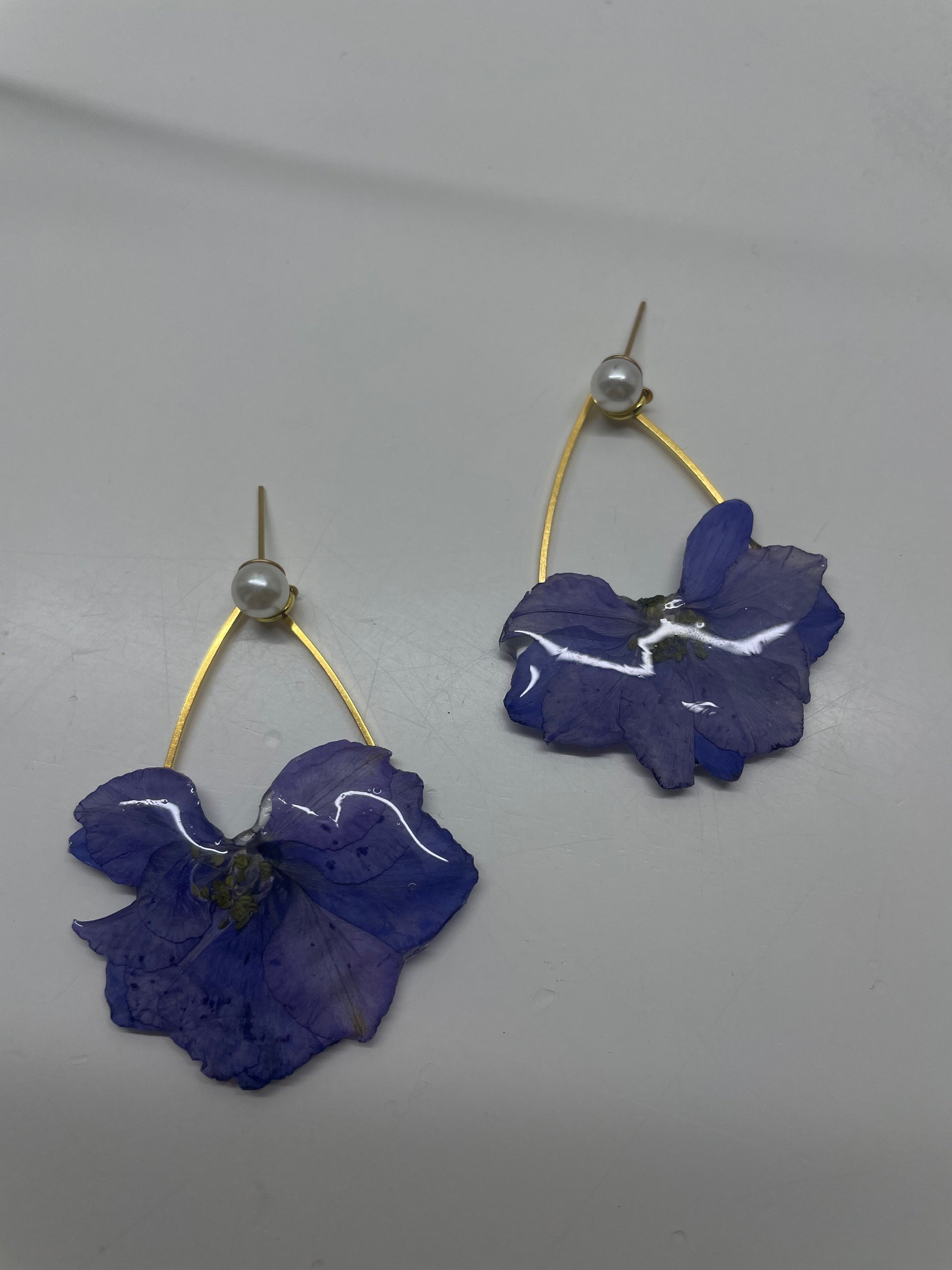 Orecchini in acciaio inossidabile con gancetto in perlina fiore di viola ricoperto in reaina.