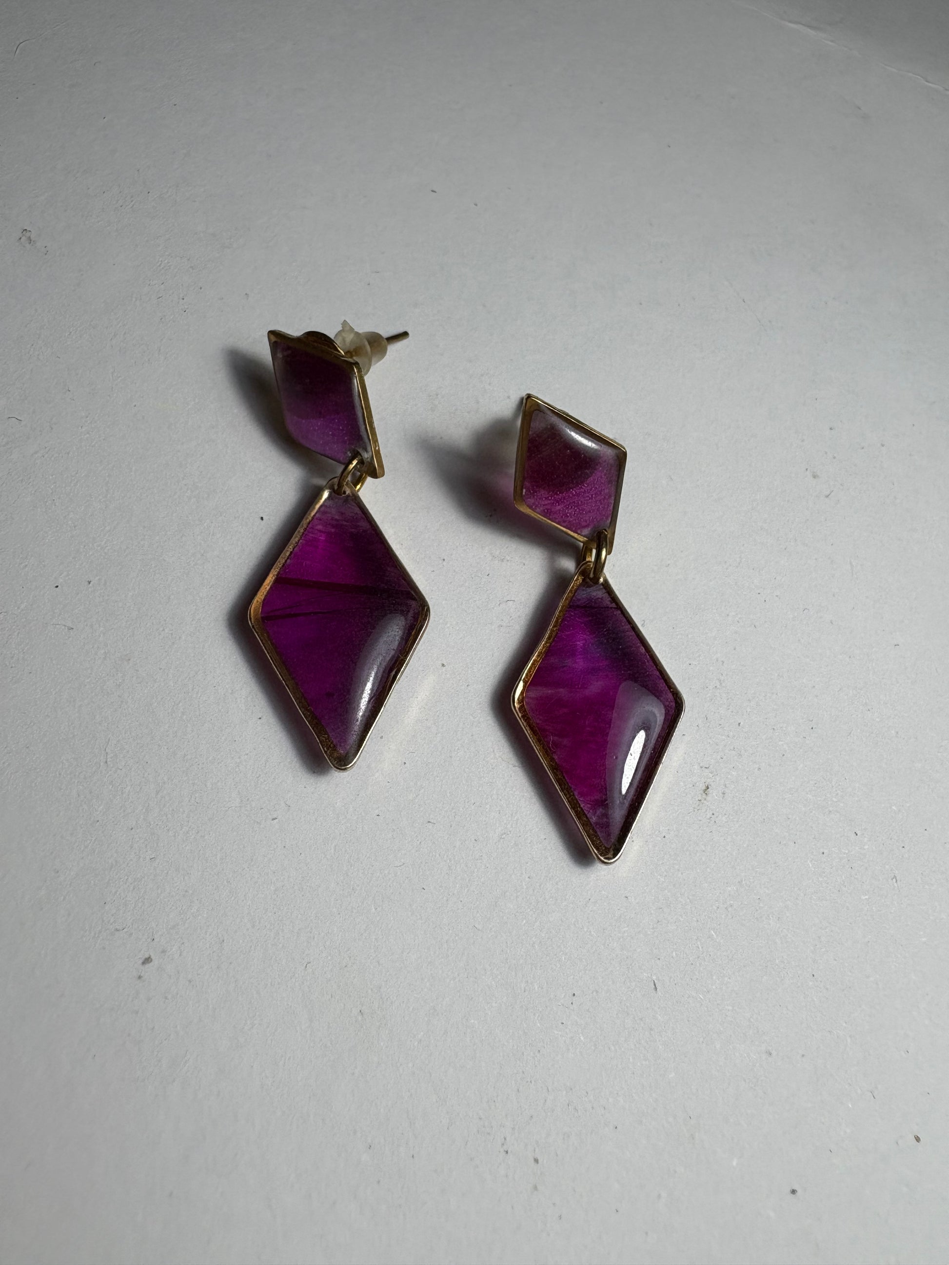 Orecchini in acciaio Inossidabile Con petalo di fiore selvatico, viola scuro, essiccato e catalizzato in resina.